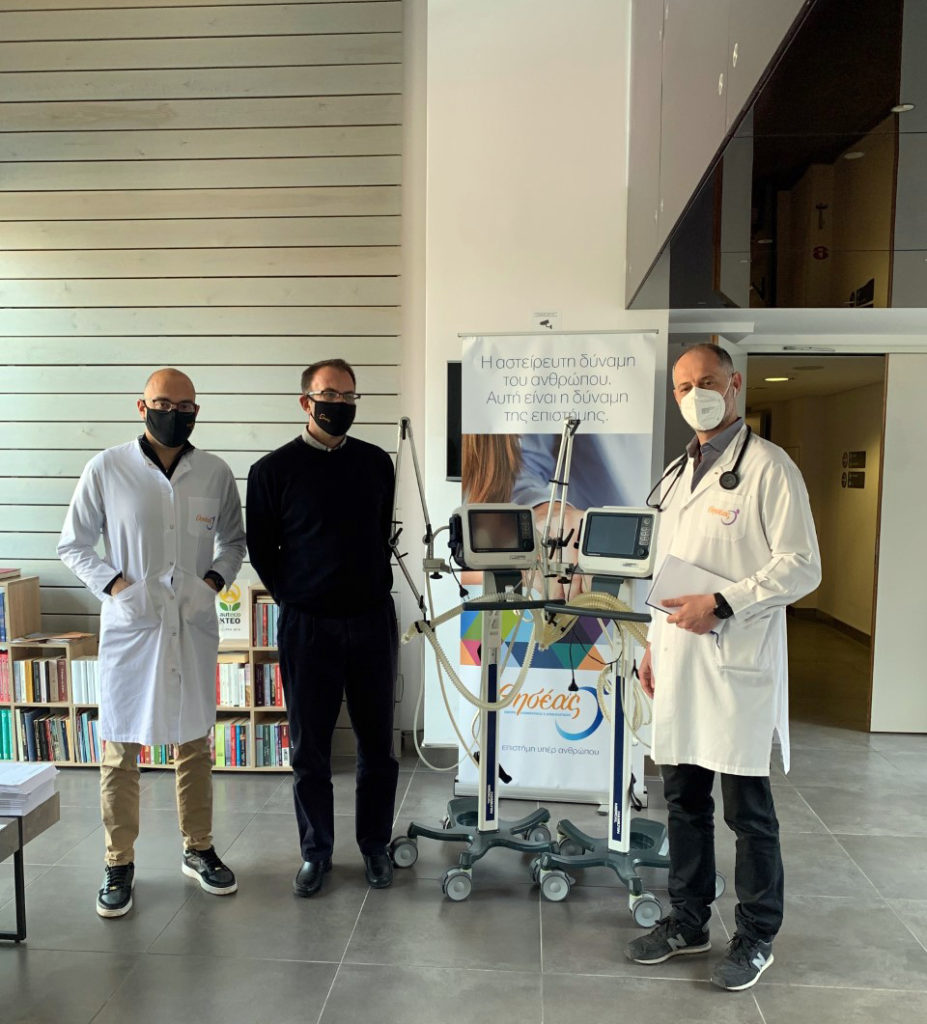 Την Παρασκευή 2 Απριλίου 2021, είχαμε την τιμή και την ιδιαίτερη χαρά να παραδώσουμε 2 υπερσύγχρονους αναπνευστήρες στο Σισμανόγλειο Γενικό Νοσοκομείο Αττικής, με την βεβαιότητα πως με την άμεση χρήση τους, συνάνθρωποί μας που νοσούν από τον ιό SARS-Cov-2 και αντιμετωπίζουν προβλήματα αναπνοής, θα βοηθηθούν στο μέγιστο βαθμό.